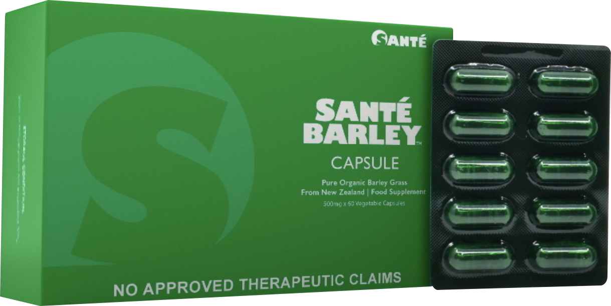 Santé Barley™ Capsules contain pure, certified organic barley grass powder, offering all the natural benefits in a convenient capsule format. Encapsulated in vegetable capsules, they are perfect for those who prefer their barley intake in the most natural form possible, ensuring no additional calories or artificial ingredients. Vegetable capsules are derived from plant sources, making them suitable for vegetarians and vegans, and are free from common allergens. Each capsule provides a wealth of nutrients including vitamins, amino acids, calcium, enzymes, and essential minerals such as zinc and magnesium.